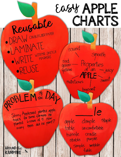 If you don’t use math journals or just need something for a sub, I’ve put together an editable problem of the day math printable you can use. To create a file of word problems, insert a duplicate slide into the editable PowerPoint and add a new problem. Be sure to save it so that next year, you’ll be all set! Click here to download this free Johnny Appleseed math printable.I hope you’ll take a try at making these charts. You can make all sorts of seasonal shapes.